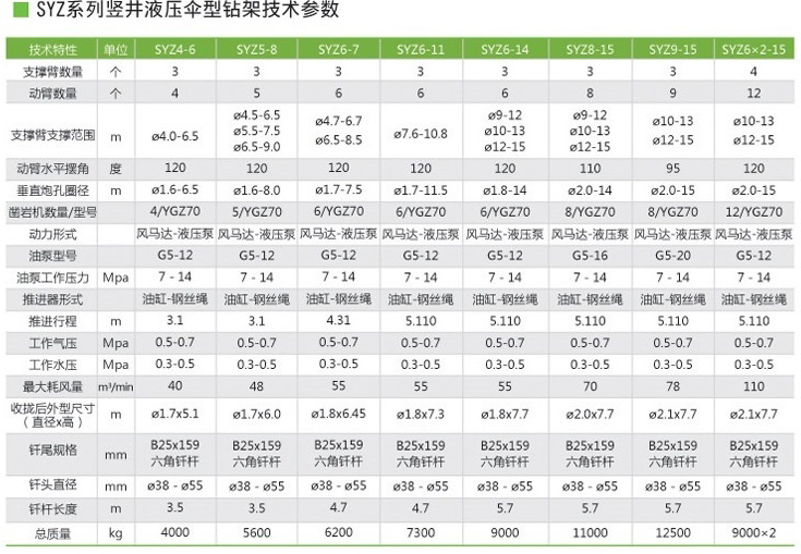 傘鉆是實施機械化開挖立井而專門研制的鉆孔設備。它像一把雨傘,撐開能進行鉆鑿炮眼,收攏能方便井筒運送,是實現快速打井,縮短建井周期,提高經濟效益必不可少的專用設備。